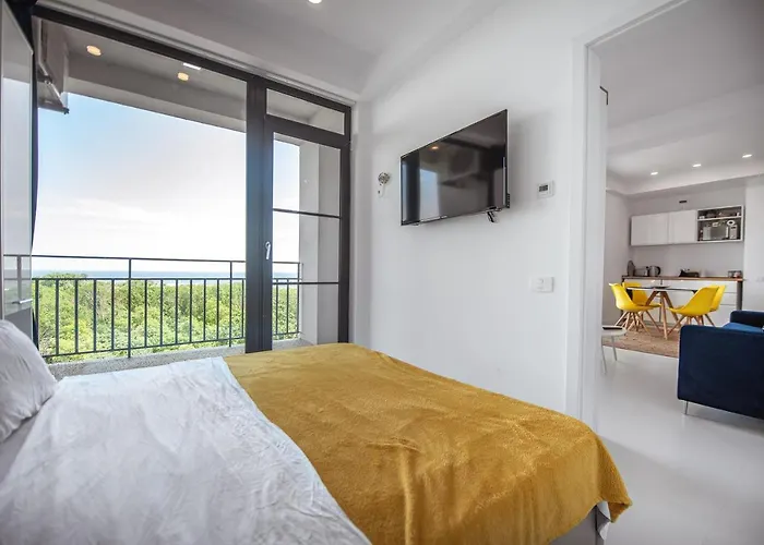 Situated around 20 minutes' walk from Cap Aurora Beach, the spacious 1-bedroom Sea View Oxygen Neptun Apartment provides guests with Wi-Fi for either business or leisure. This beachfront apartment with a terrace is located a walk from Paradis Land.